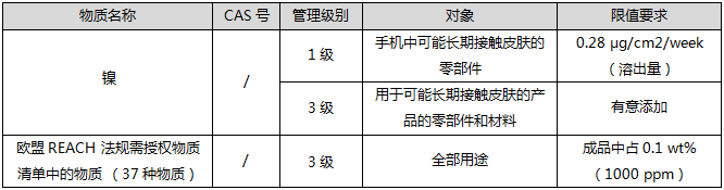 1. 新增2类新的有害物质进入管理清单,见下表: