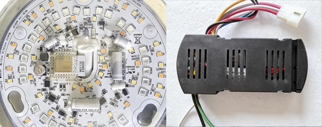 灯板上的MCU接收到灯光信号后,按照约定的协议内容输出PWM信号给LED恒流驱动电路,实现开关灯、调光、调色温、RGB颜色变化等功能。