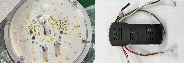 控制器引出两条电源线(L、N)经吊杆下行至灯板,另有1条电机线与共用N线下行至AC电机。