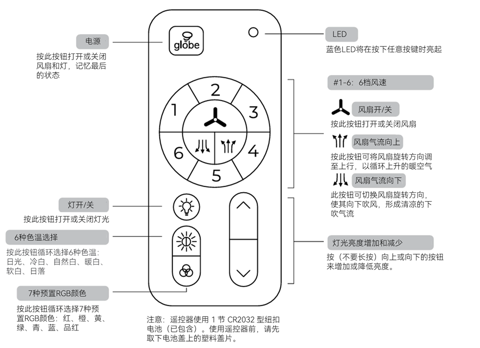 带有RGB灯光功能,为吊扇灯营造更多丰富情景; -