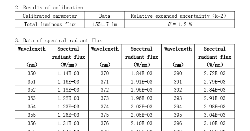 光谱校准由第三方机构测量并提供标准灯泡的完整光谱功率分布,通常以1 nm为间隔给出各波长点的辐射通量值及其不确定度。企业实验室据此校正其测量系统的光谱响应曲线,实现光谱层面的绝对标定与溯源。